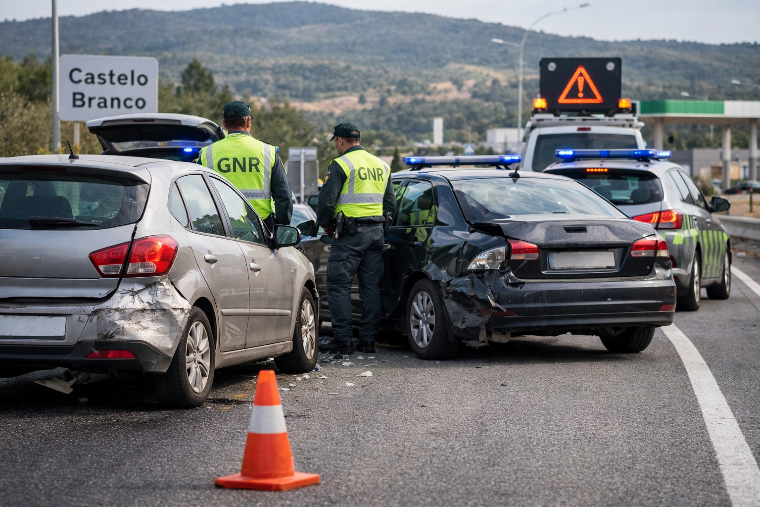 De acordo com informação recolhida no local, a colisão ocorreu durante um período de tráfego intenso, levando à intervenção da Guarda Nacional Republicana, que assegurou a sinalização da via e o controlo do trânsito para evitar novos incidentes.
