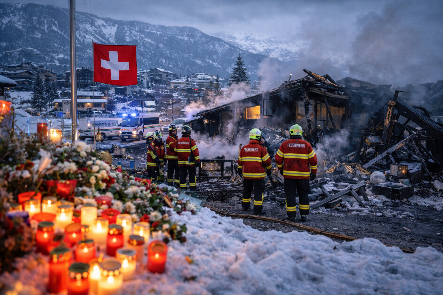 Switzerland has declared a period of national mourning, with flags flying at half-mast and memorial services held in Crans-Montana and cities across the country. Church bells toll and moments of silence have been observed in honour of those lost. World leaders and officials from affected nations have expressed condolences to the families and friends of victims, highlighting the profound impact of the tragedy. Reuters